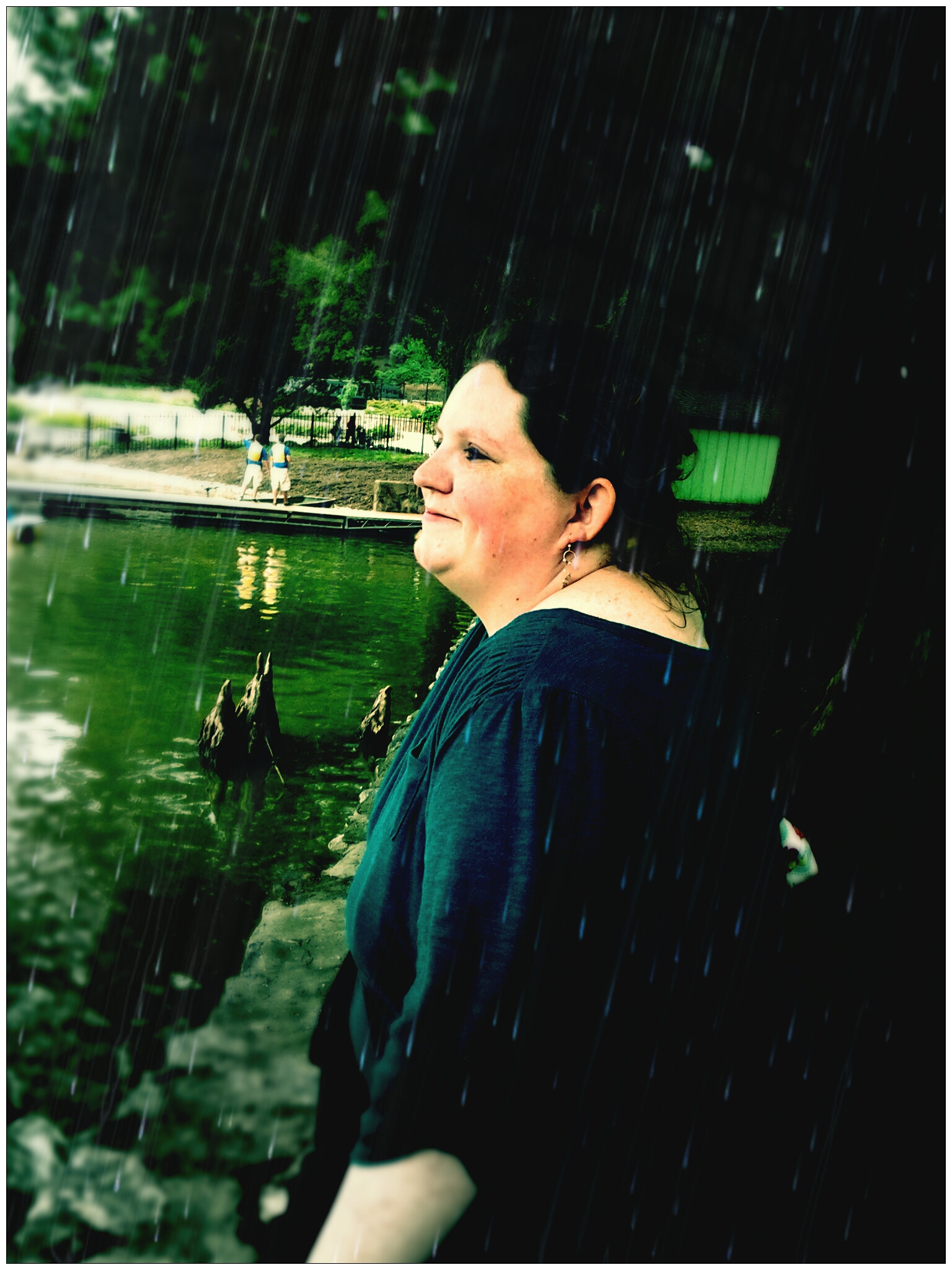 Thank you, Oneta. The picture was actually a rainy day at one of my favorite parks. I did some special effects on the image to make it look more like I was in the rain than I actually was. 😉